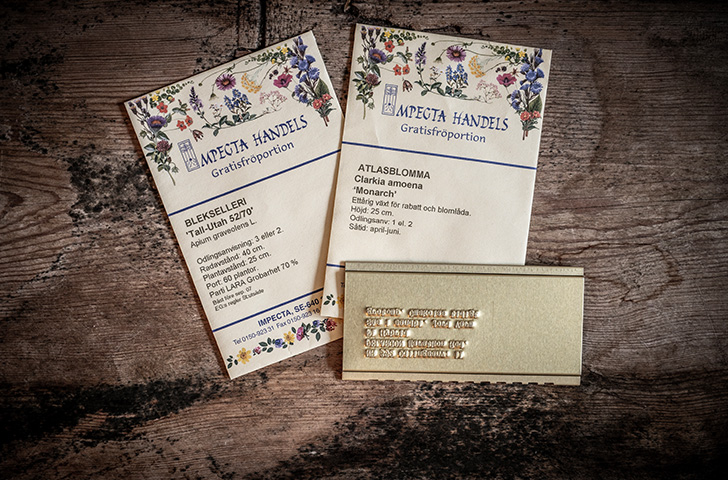 Na początku wszystkie torebki były pakowane ręcznie, w różnych rozmiarach. Miarki zrobił sam Ingemar i w zależności od rodzaju nasion musiał opracowywać nowe rozwiązania. Z przodu torebki przybijano stempel z informacją o odmianie.